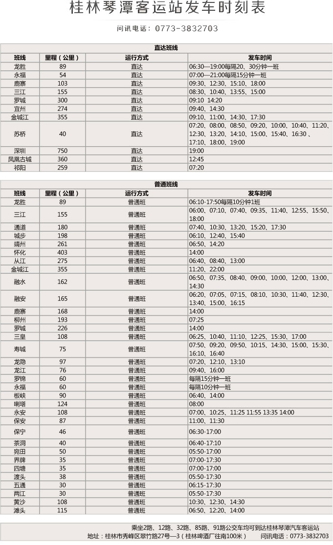 桂林市琴潭客运站发车时刻表