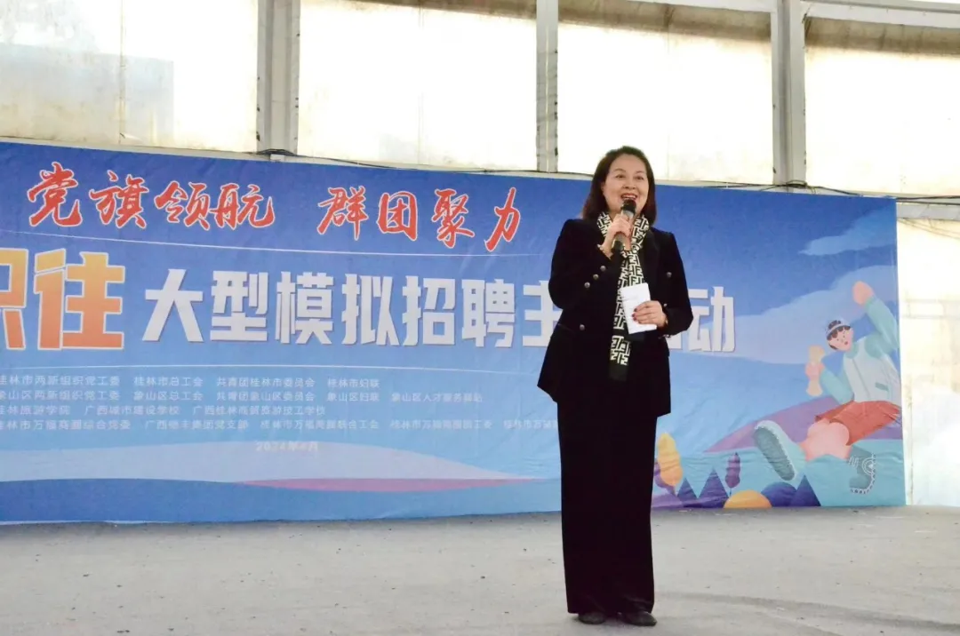 肖登华在讲话中指出,此次活动是深化校企合作、共促大学生就业创业的实际举措,也是党建引领、群团聚力,助力桂林建设世界级旅游城市的具体行动。他强调,要坚持党建赋能,通过思想引领、任务引领、创新引领“三个引领”,引领校企融合发展。要创新活动载体,坚持党建带群建,推动党、工、青、妇组织勠力同心,打造校企合作名片。要整合服务内容,大力开展“党旗领航+校企合作”活动,以优质服务促校企深度融合,凝聚起打造世界级旅游城市的强大力量。