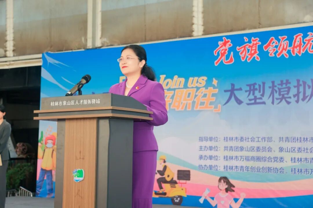 活动上,象山区委社会工作部部长、“两新”工委书记肖登华致辞,广西德丰集团党支部书记、万福商圈综合党委书记蒙庆作为企业代表发言。广西正知教育集团董事长郑钢分享创业经历,为大学生创业成才提供了成功案例。桂林市冰晶职业培训学校校长、桂林市女企业家协会副秘书长白彬结合自己丰富的实践经验和工作中的真实案例,为大学生进行面试技巧培训。此外,桂林旅游学院、桂林市第二技工学校学生代表分享了面试心得,与会领导为模拟招聘成功的大学生颁奖。