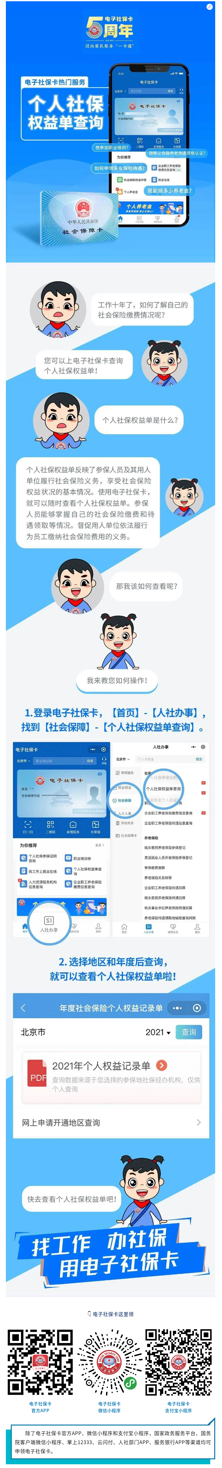 【一图看懂】想查询个人社保权益单?来电子社保卡!
