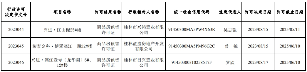 第2023044、2023045、2023046号商品房预售许可证结果公示