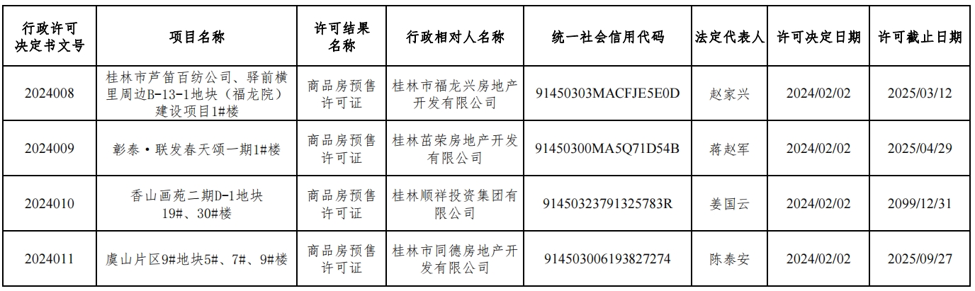 第2024008、2024009、2024010、2024011号商品房预售许可证结果公示