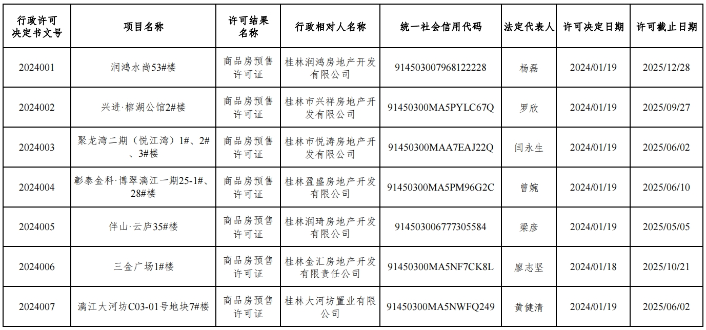 第2024001、2024002、2024003、2024004、2024005、2024006、2024007号商品房预售许可证结果公示