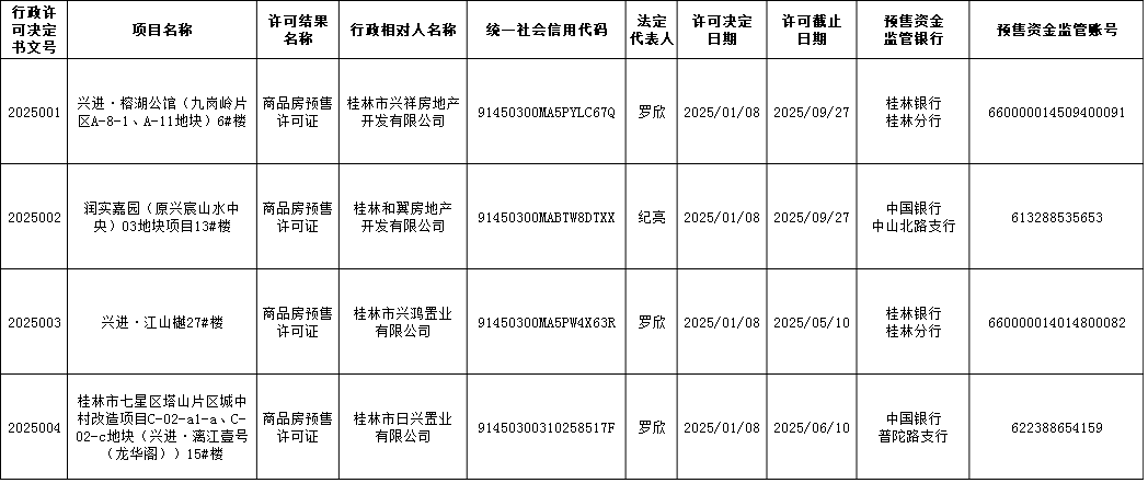第2025001、2025002、2025003、2025004号商品房预售许可证结果公示