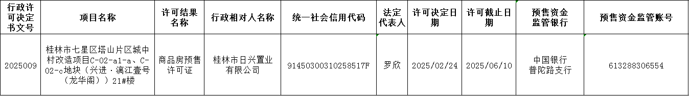 第2025009号商品房预售许可证结果公示