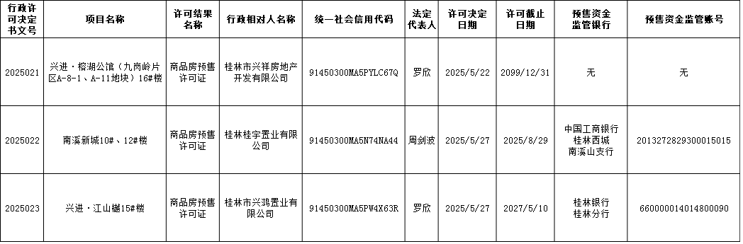 第2025021、2025022、2025023号商品房预售许可证结果公示