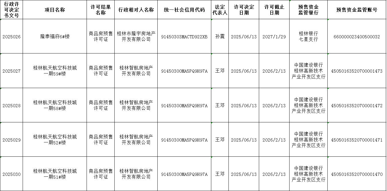 第2025026、2025027、2025028、2025029、2025030号商品房预售许可证结果公示