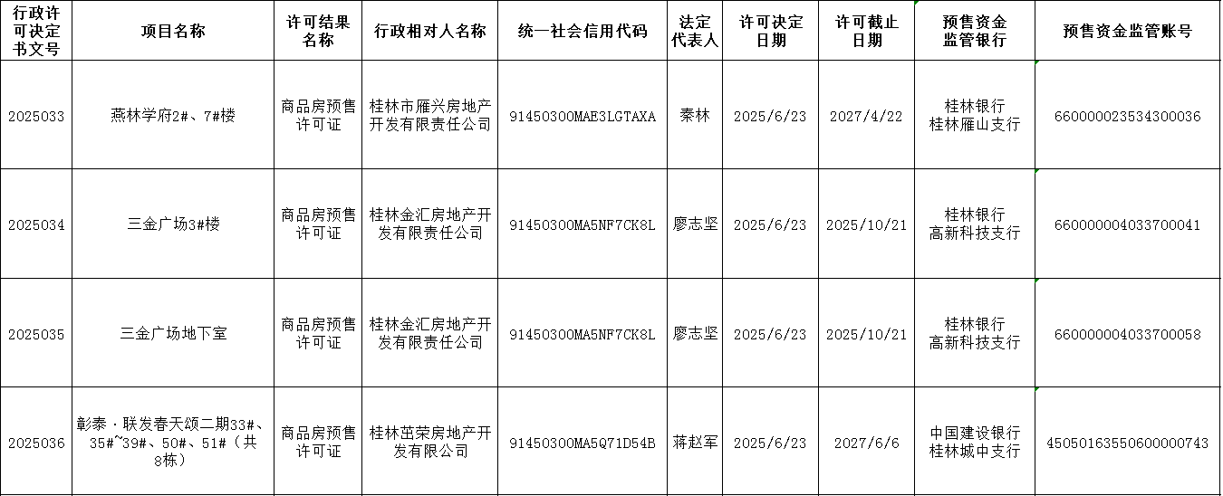 第2025033、2025034、2025035、2025036号商品房预售许可证结果公示