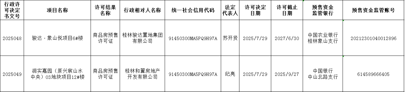 第2025048、2025049号商品房预售许可证结果公示