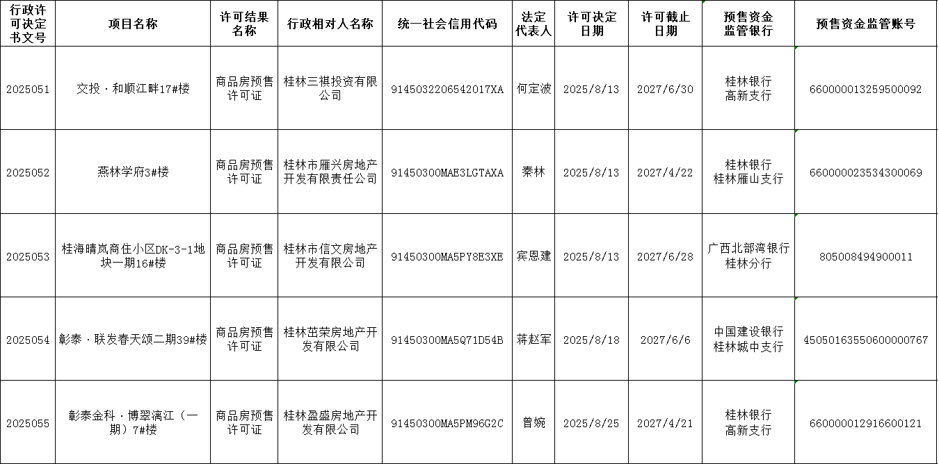 第2025051、2025052、2025053、2025054、2025055号商品房预售许可证结果公示