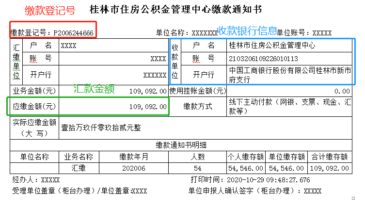 情况一、没有打印《桂林市住房公积金缴款通知书》,单位就直接汇款;
