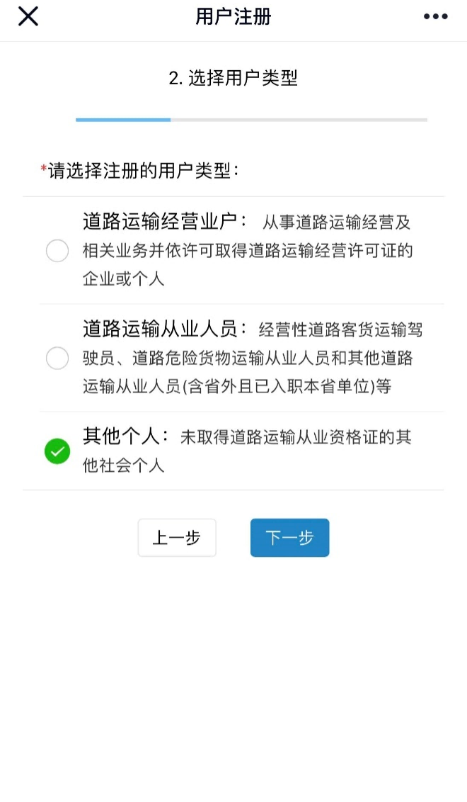 勾选需要注册的用户类型,申领从业资格证需勾选“其他个人”选项。