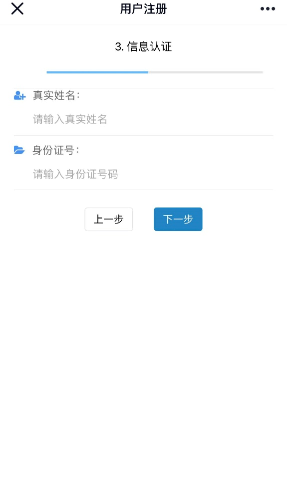 填写认证信息,包括真实姓名、身份证号。填写无误后点击“下一步”,完成注册。