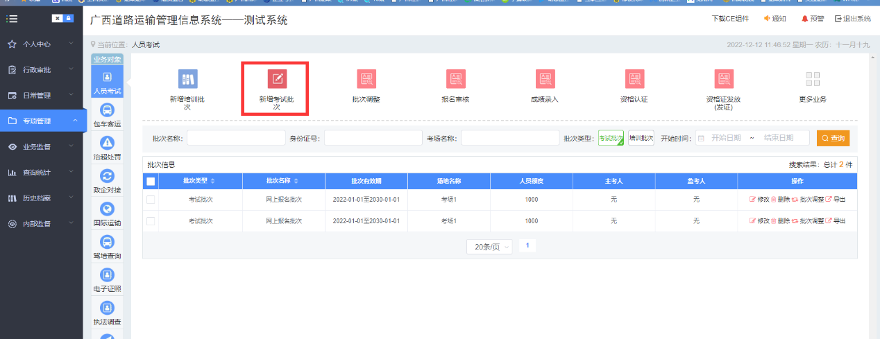 将网上报名批次人员信息转移到新增的培训批次或者考试批次并保存。