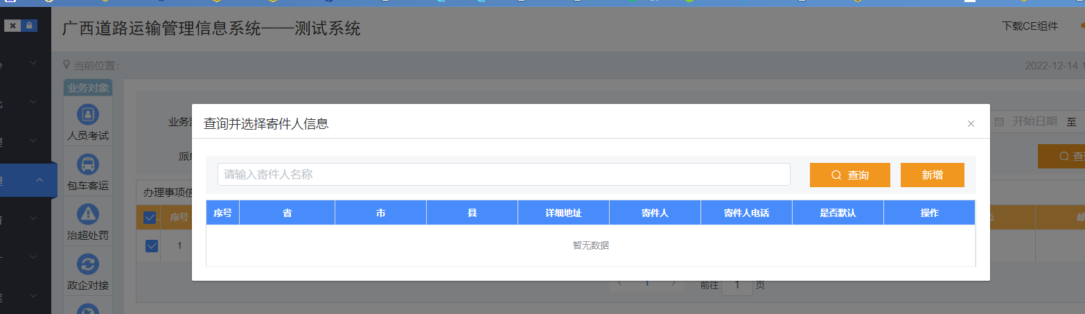 勾选未派单业务信息。点击查看,查看业务的收件人信息。