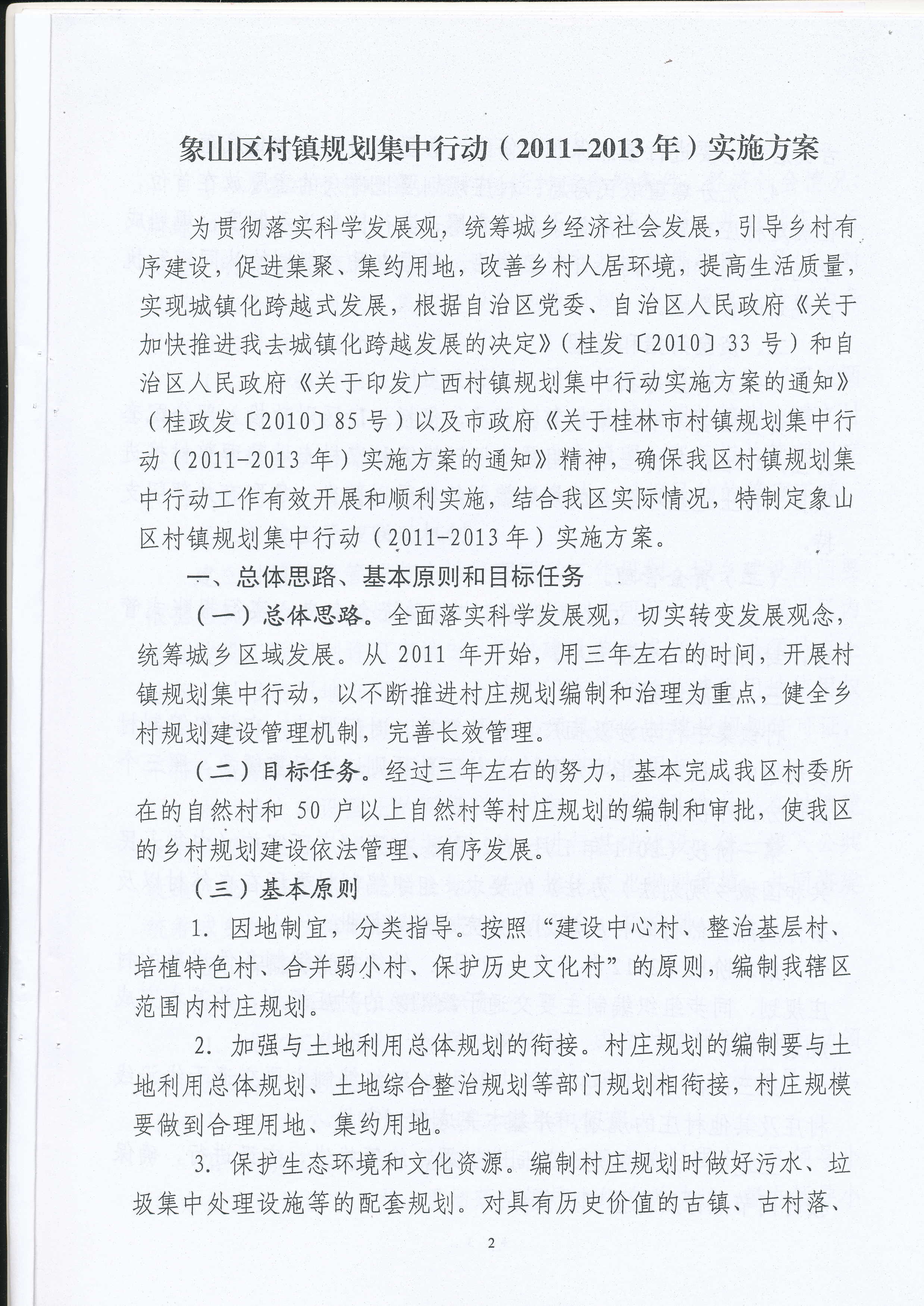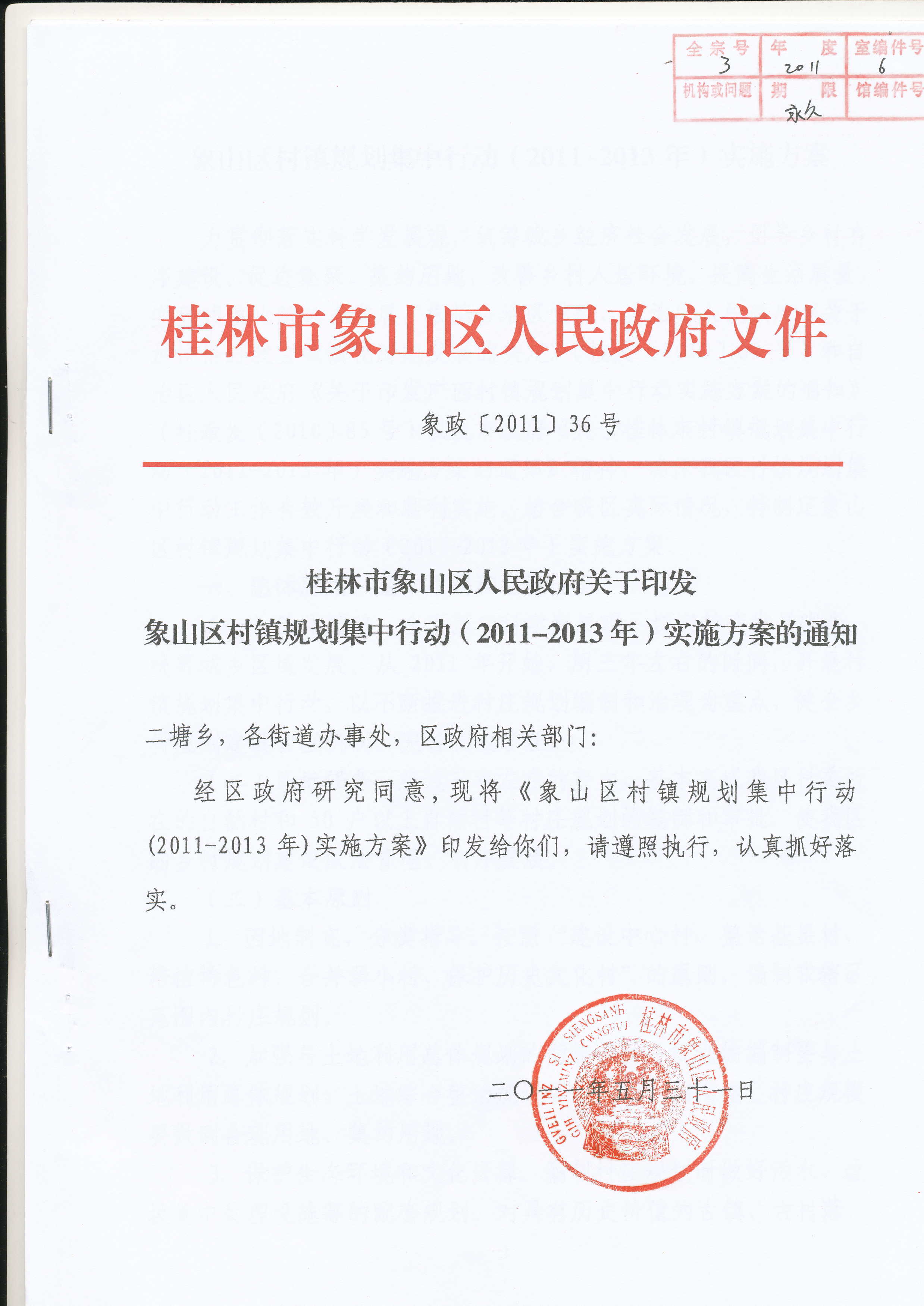 桂林市象山区人民政府 关于印发象山区村镇规划集中行动(2011-2013年)实施方案的通知