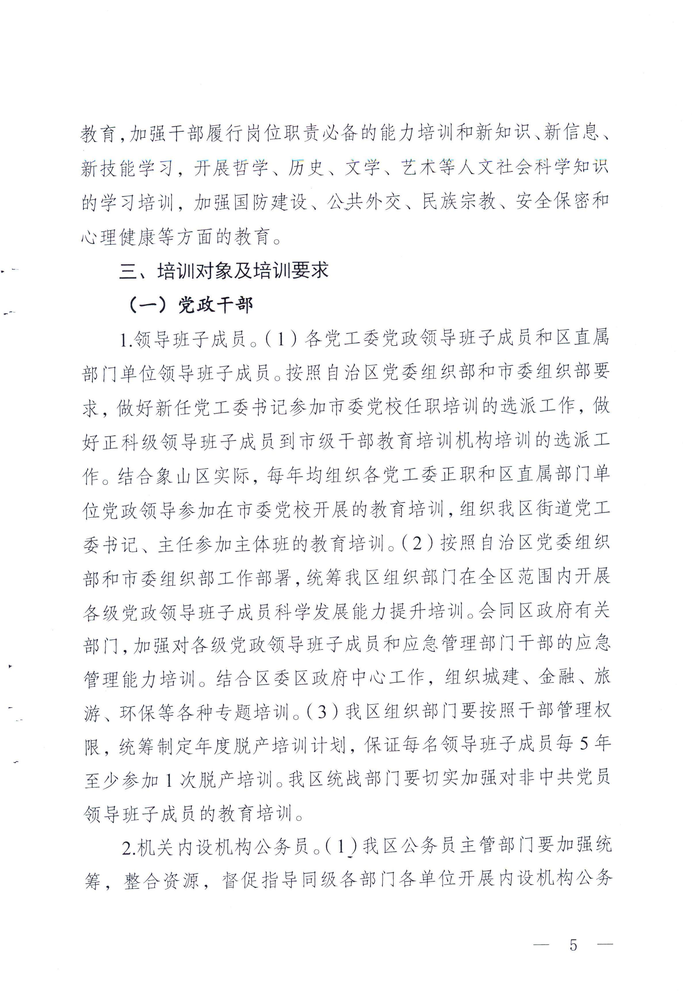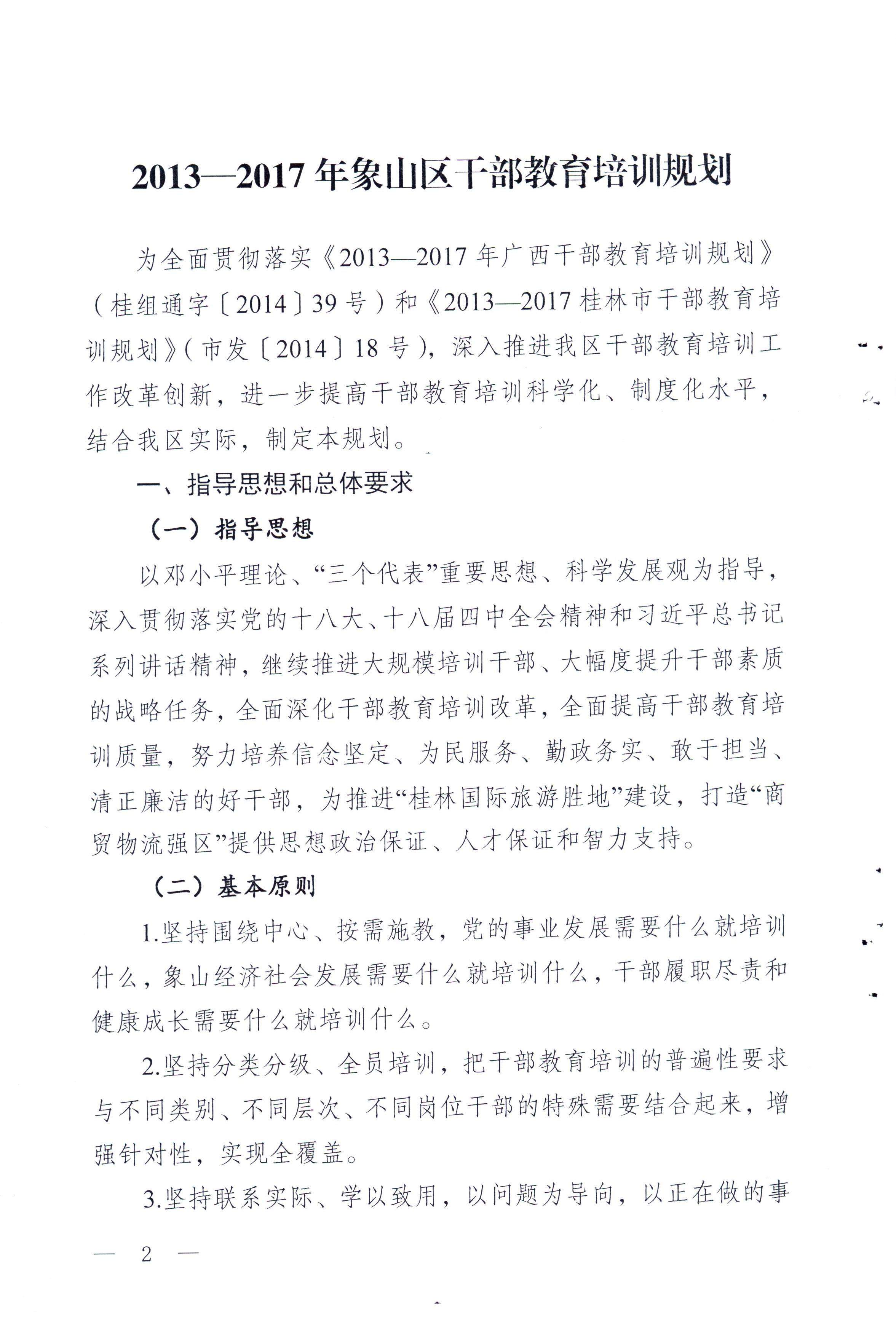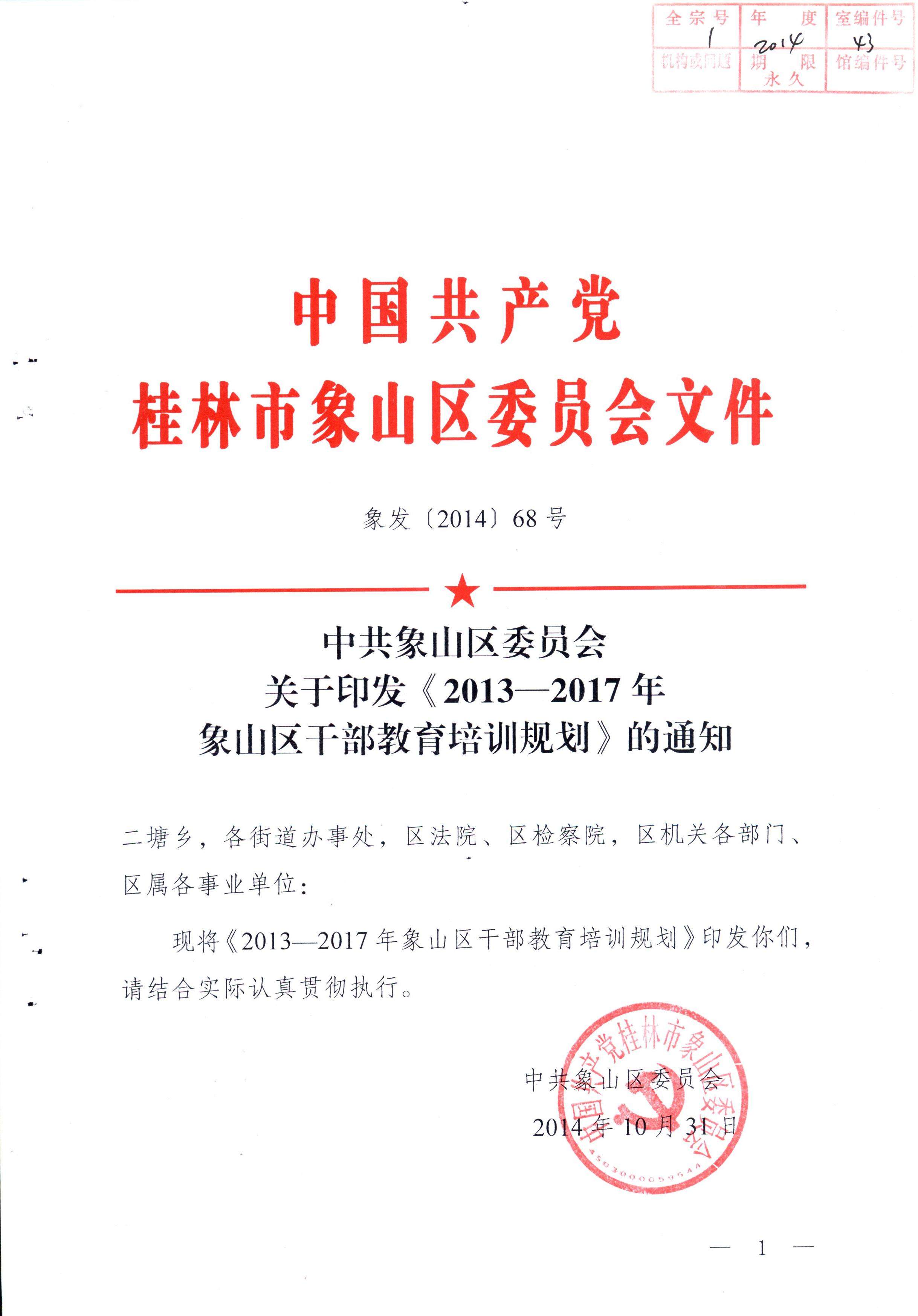 中共桂林市象山区委员会 关于印发《2013-2017年象山区干部教育培训规划》的通知