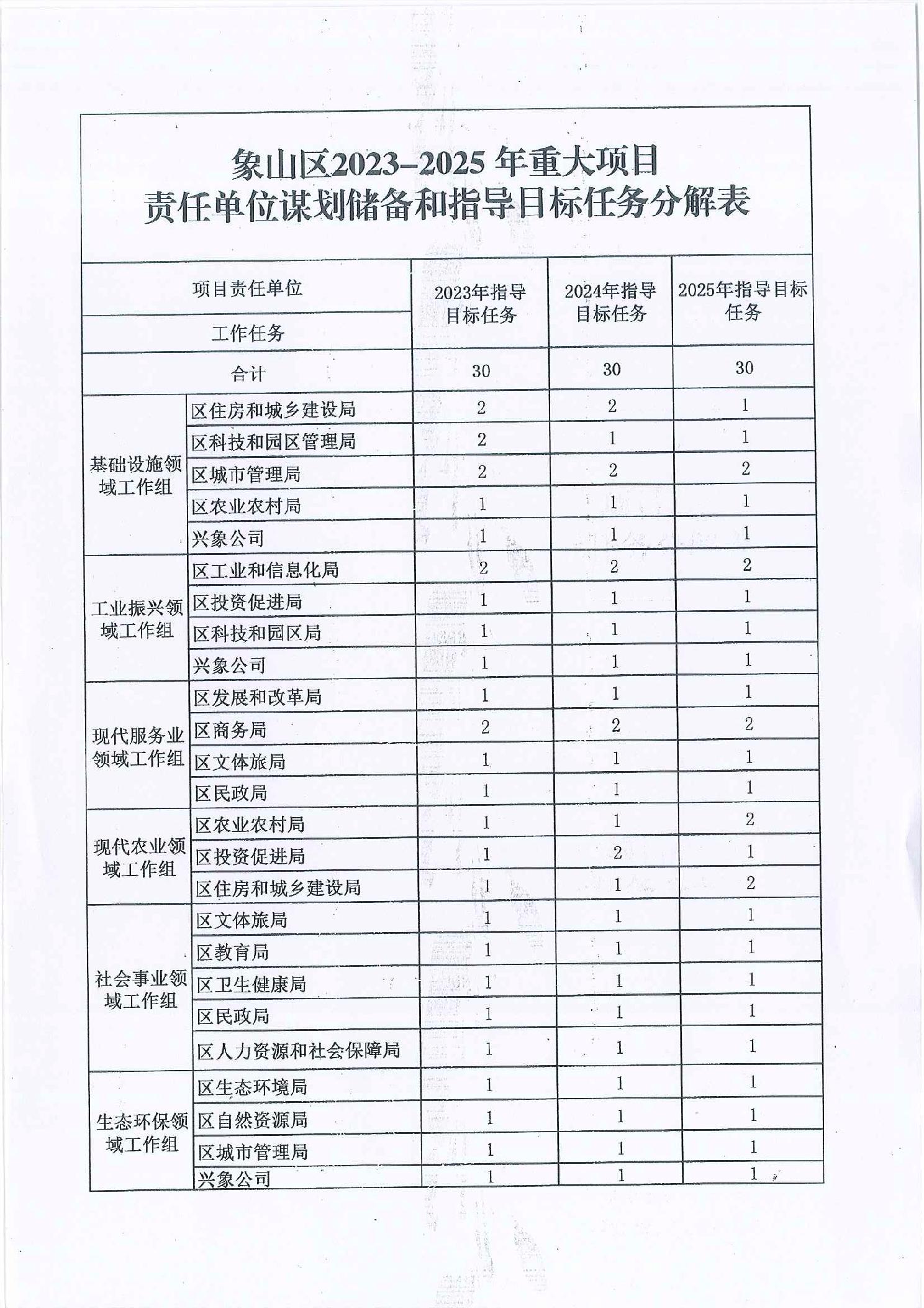 象政办〔2023〕12号 象山区人民政府办公室关于印发象山区重大项目谋划储备三年实施方案(2023—2025年)的通知