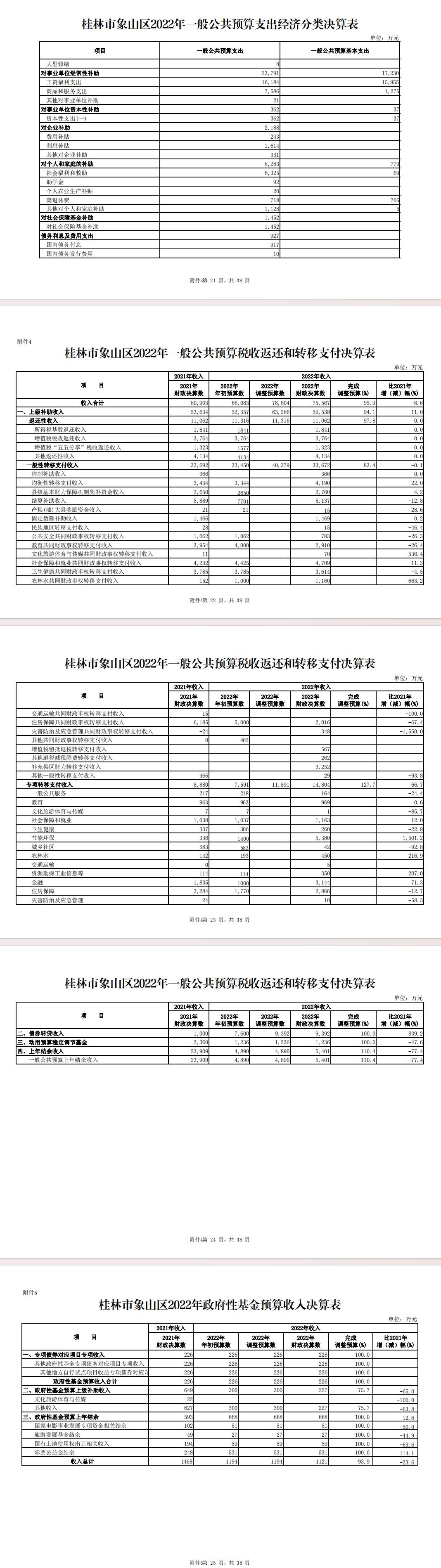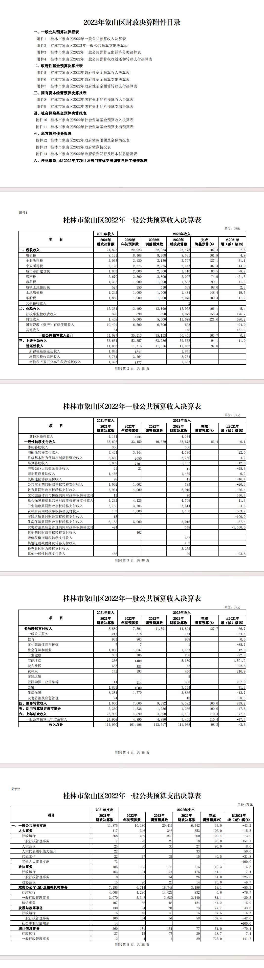 2022年,是党的二十大胜利召开之年。在区委的坚强领导和区人大的有效监督支持下,全区财税部门坚持以习近平新时代中国特色社会主义思想为指导,认真学习贯彻习近平总书记对广西“五个更大”重要要求,深入贯彻落实习近平总书记视察广西“4·27”重要讲话和对桂林的重要指示精神,坚定不移贯彻新发展理念,围绕中心、服务大局,高效统筹疫情防控和经济社会发展,扎实推进“稳中求进攻坚年”各项工作,为全力以赴打好“十场攻坚战”提供财力保障,全区财政运行总体平稳。一般公共预算收入36401万元,增长6.8%,增幅排名全市第3位。