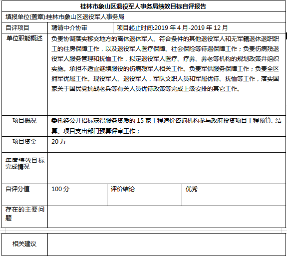 纳入象山区财政局2019年部门决算汇编范围的单位共2个,其中:行政单位1个,即桂林市象山区退役军人事务局;参照公务员管理事业单位1个,即桂林市象山区退役军人服务中心。