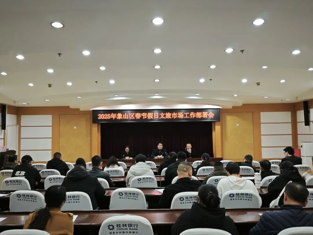 为贯彻落实桂林市、象山区元旦春节假日市场工作会议精神,强化岁末年初和春节期间辖区文化旅游市场监管,为广大市民和游客营造一个欢乐、祥和、放心的市场环境和节日氛围。1月6日,区文体旅局联合市文化市场综合行政执法支队二大队在区政府二楼会议室召开象山区春节假日文旅市场工作部署会。辖区文化娱乐、涉旅相关企业负责人参加了会议。