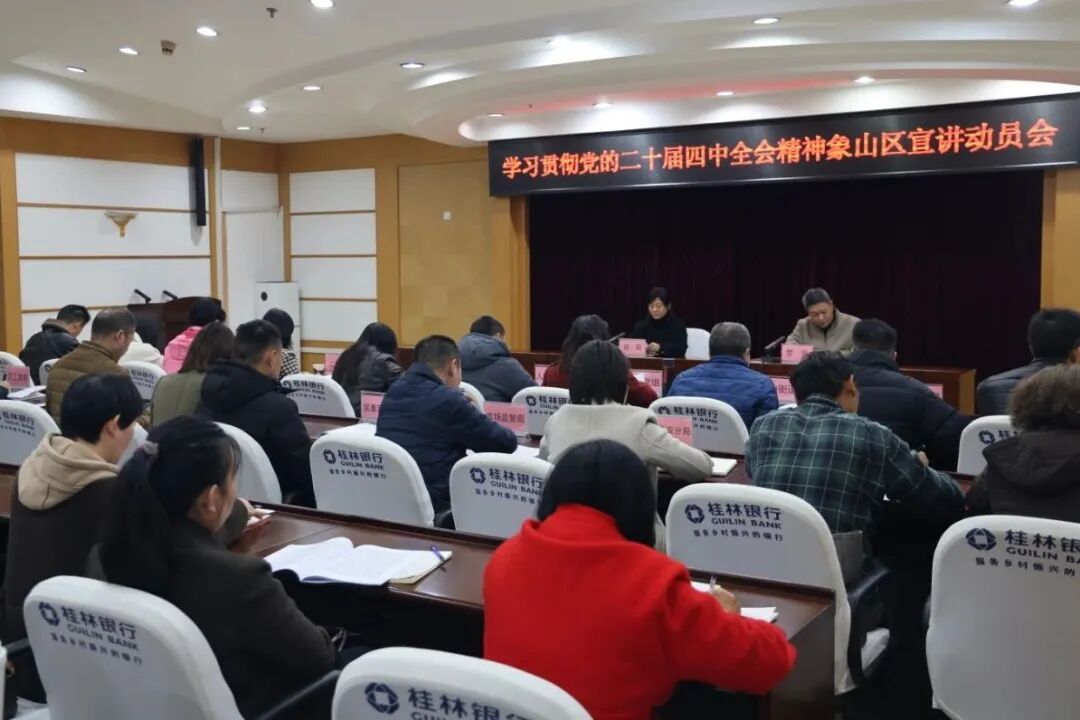 会议深入学习贯彻党的二十届四中全会精神和习近平总书记重要讲话精神,贯彻落实党中央、自治区党委、桂林市委和区委相关工作部署,对我区全面开展党的二十届四中全会精神宣讲工作进行动员部署。