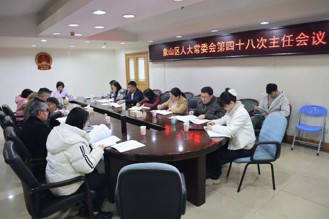 1月9日,象山区十二届人大常委会第四十八次主任会议在区政府八楼举行。区人大常委会主任经翠艳主持会议,区人大常委会副主任白峰、赖慧云、李雅劼、李光祥出席。