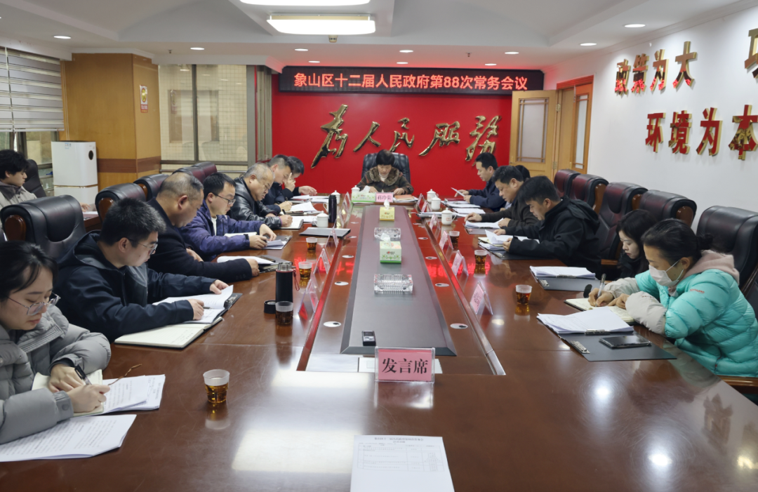 2月6日,象山区十二届人民政府第88次常务会议在区政府四楼会议室召开,会议传达学习了习近平总书记在中共中央政治局第二十四次集体学习时的重要讲话精神,听取了《象山区2025年度舆情分析报告》。区领导蒋玲荣、秦振福、周灿、谢艳、王小琰、熊永波、李晓武出席会议。