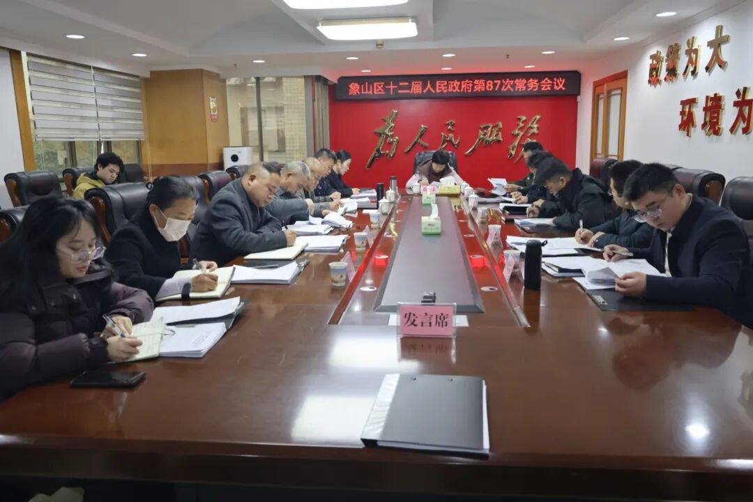 1月23日,象山区十二届人民政府第87次常务会议在区政府四楼会议室召开,会议传达学习了习近平总书记在省部级主要领导干部学习贯彻党的二十届四中全会精神专题研讨班开班式上的重要讲话精神。区领导蒋玲荣、张朝阳、林娟、谢艳、王小琰、熊永波、李晓武出席会议。