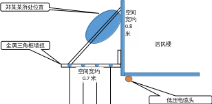 郑某某跨坐水平金属三角框墙担俯视示意图