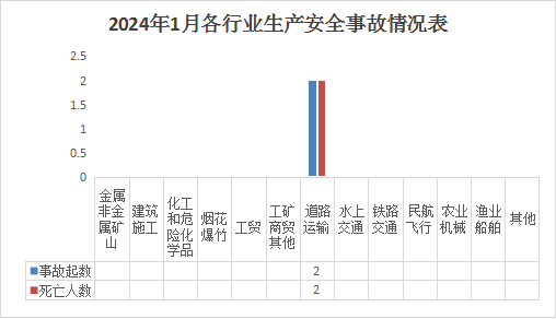 据统计,1月,全市通过生产安全事故统计信息直报系统(以下简称直报系统)报送各类生产安全事故2起、死亡2人、受伤4人,事故起数、死亡人数、受伤人数同比分别增加1起、1人、4人,事故起数、死亡人数均上升100%。无较大、重大和特别重大事故发生。