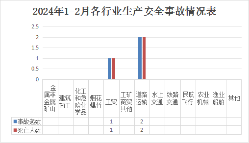 2月份接报生产安全事故起数1起、死亡1人、无受伤人数。