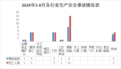 9月份接报生产安全事故起数2起、死亡3人、无受伤人数。