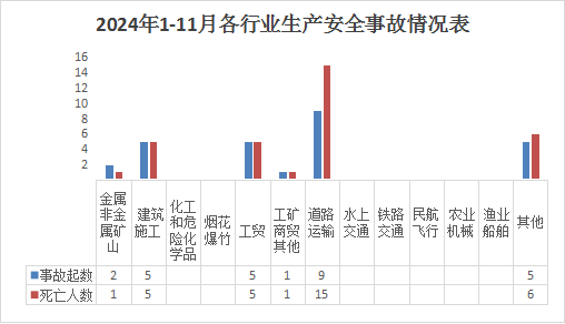 11月份接报生产安全事故起数1起、死亡1人、无受伤人数。