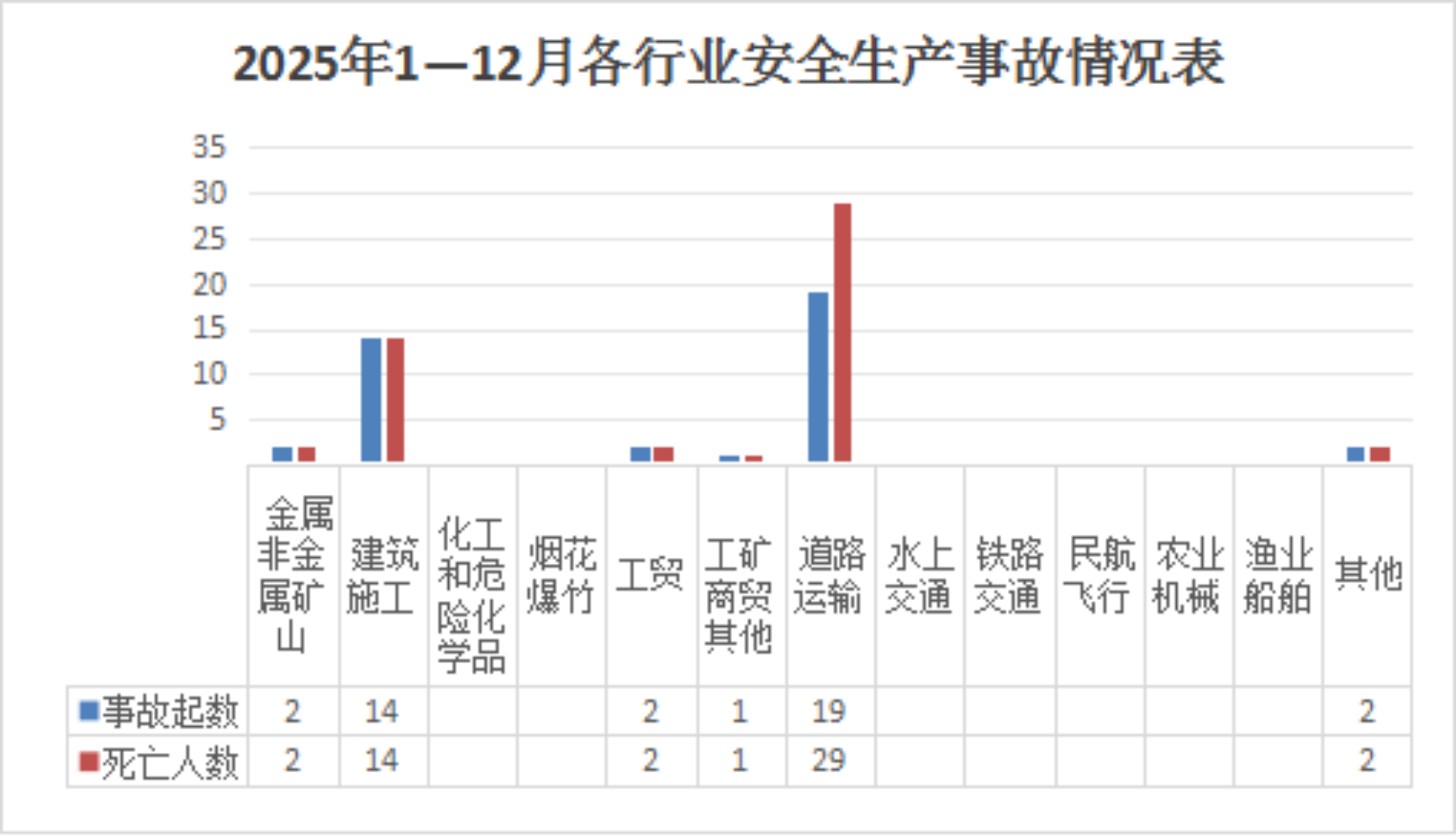 据统计,1—12月,全市通过生产安全事故统计信息直报系统报送各类生产安全事故40起、死亡50人、受伤20人。其中较大事故3起、死亡9人、受伤10人。