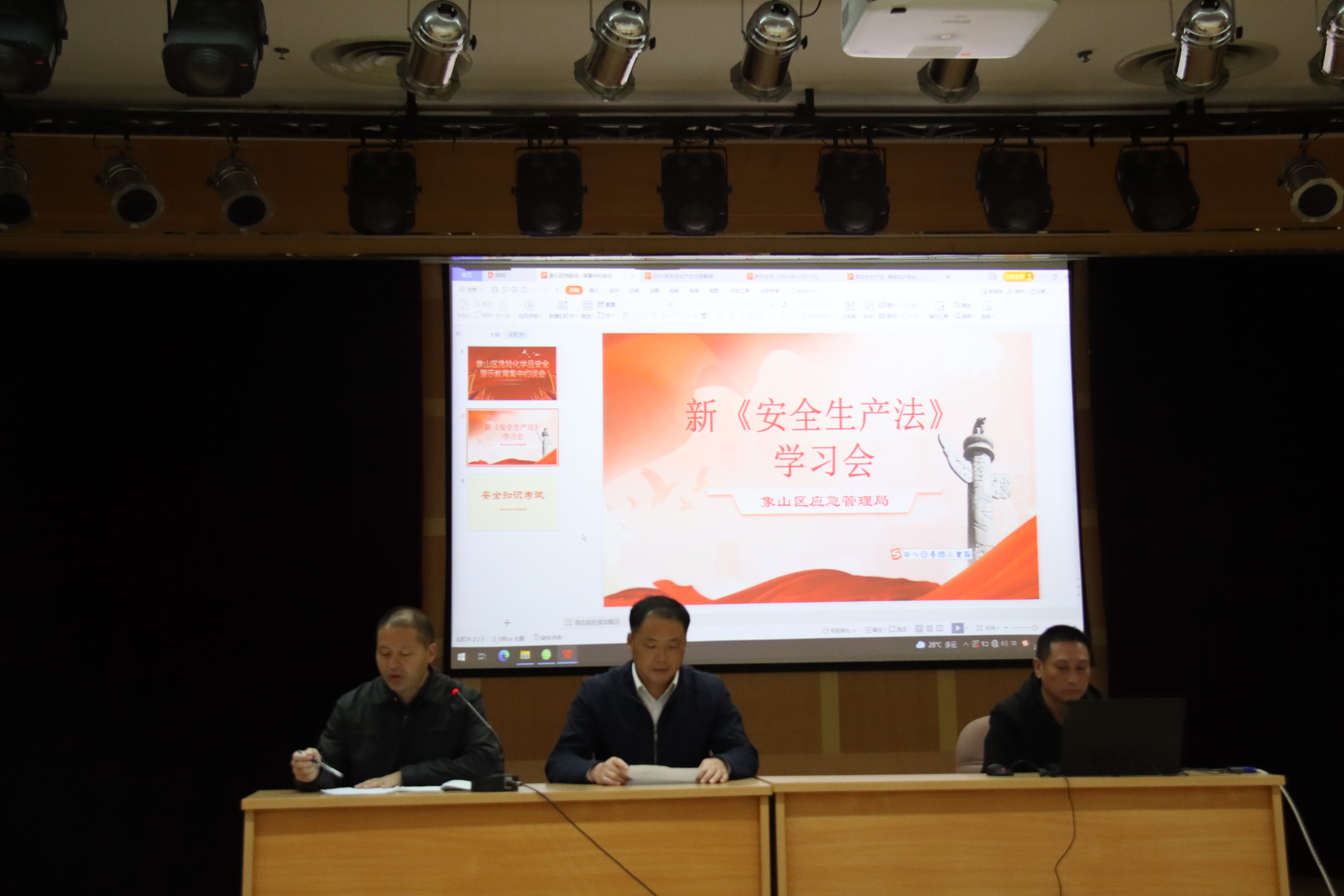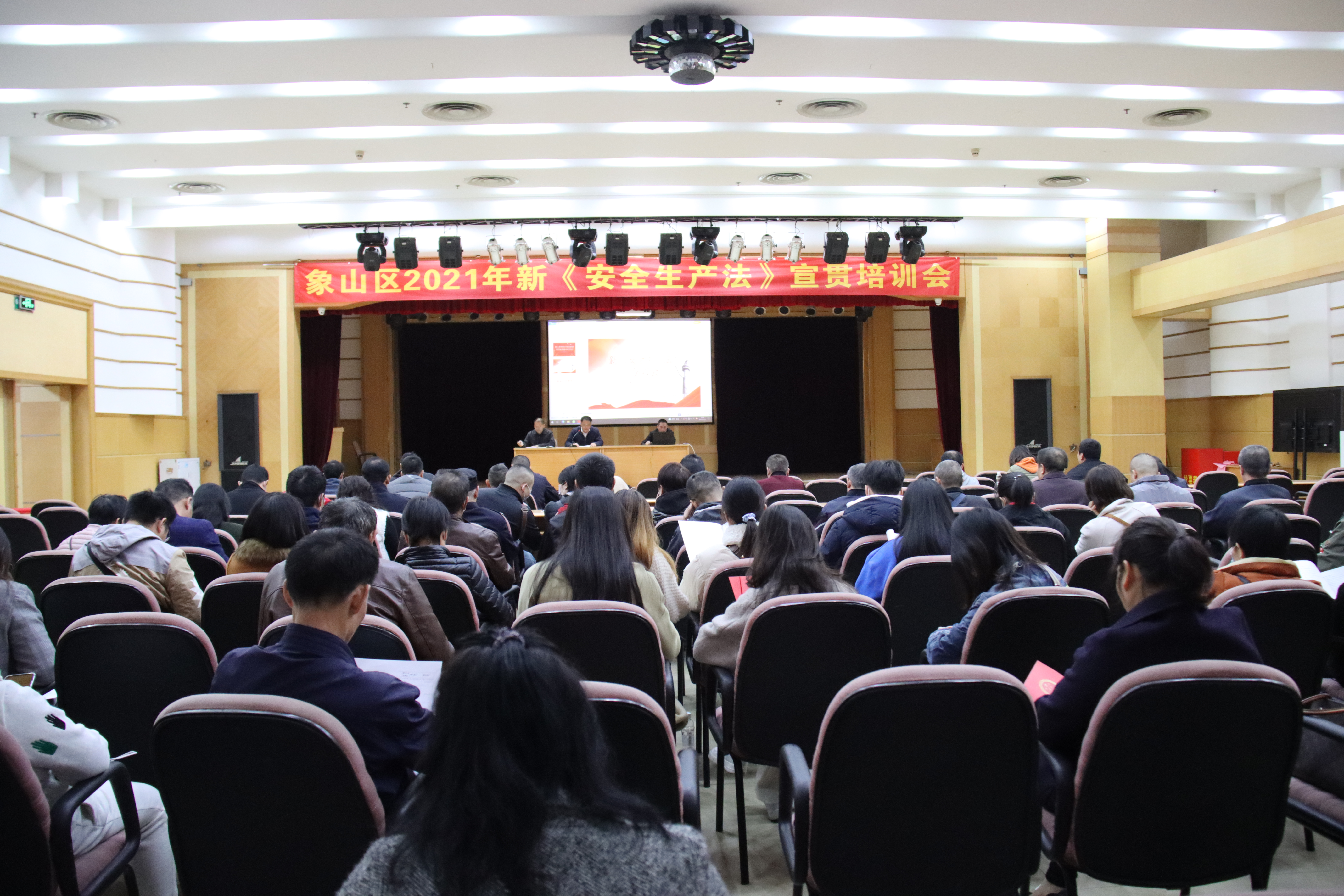 为深入学习宣传和贯彻落实新《安全生产法》,2021年11月11日,象山区组织召开新《安全生产法》宣贯培训会。区安委会全体成员单位主要领导及分管领导、各村(社区)主要负责人、辖区各管段民警参加培训。