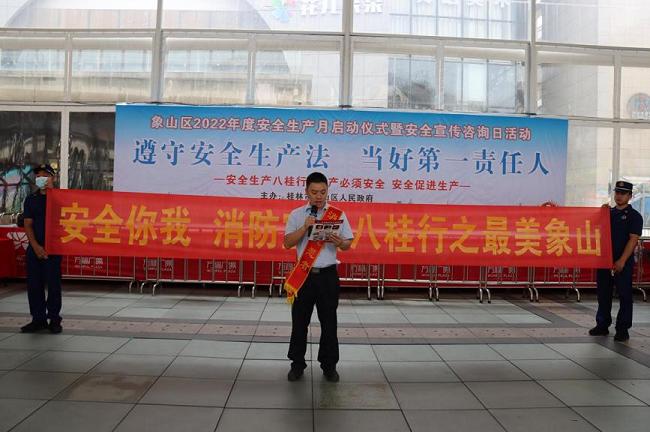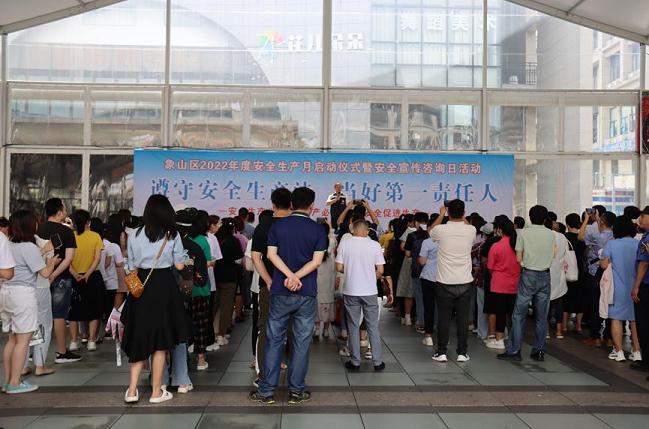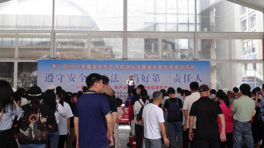 今年6月是全国第21个“安全生产月”,活动主题是“遵守安全生产法,当好第一责任人”。6月15日上午,象山区组织安全生产委员会成员单位、企业代表在万福广场开展“安全生产月”启动仪式暨“安全宣传咨询日”活动,积极开展安全知识科普宣传。