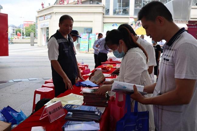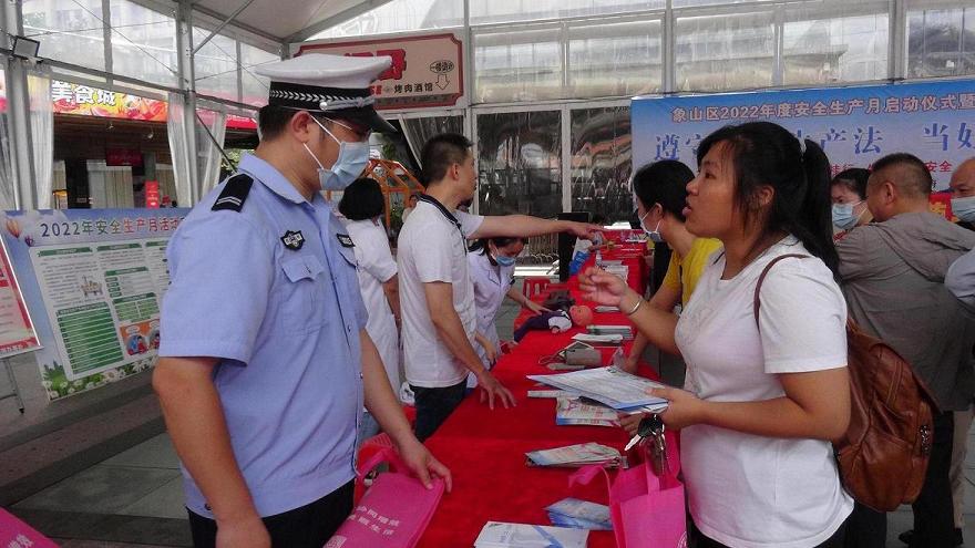 活动现场,象山区政府二级调研员熊永波宣布象山区2022年“安全生产月”活动正式启动。随后,熊永波一行走访了咨询台,翻看相关宣传资料,与企业代表交流互动。