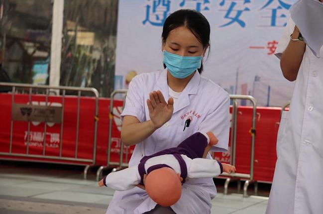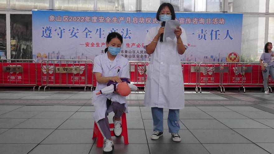 活动中,平山社区卫生服务中心医护人员讲解了“海姆立克急救法”和相关急救知识。消防志愿者宣讲了消防安全知识,象山区消防救援大队消防救援人员演示了灭火器的使用方法,并邀请群众参与实战体验。