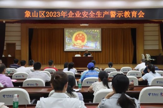 7月5日下午,象山区应急管理局组织召开重大事故隐患专项排查整治2023行动推进会暨企业安全生产警示教育会,分析了当前安全生产形势,并就重大事故隐患专项排查整治2023行动进行了再动员、再部署、再推进。辖区危化、工贸等30多家企业安全管理负责人参加会议。