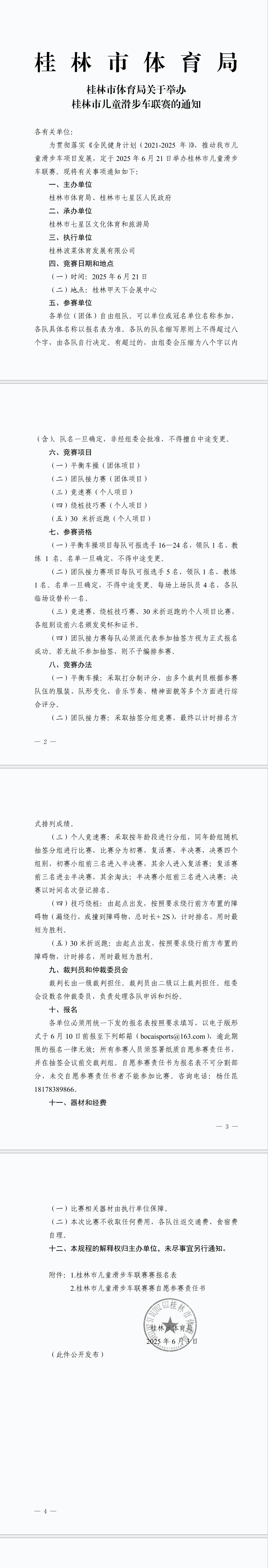 桂林市体育局关于举办桂林市儿童滑步车联赛的通知