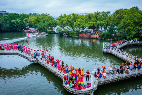 铸牢中华民族共同体意识——“潮聚三月三·和谐在八桂”2023年桂林市首届“嗨唱歌圩节”两江四湖大型实景山歌会于2023年4月22日上午在桂林两江四湖榕湖景区精彩上演!