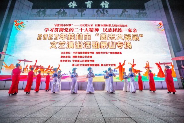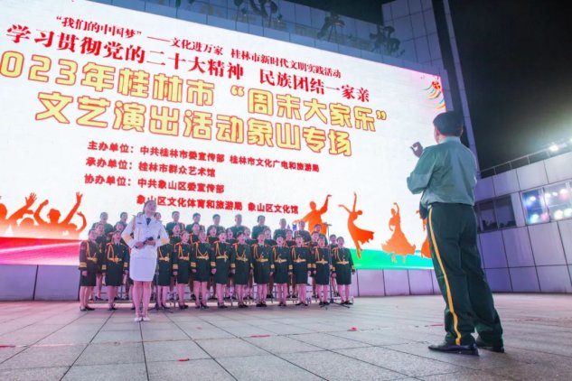7月7日晚,2023年桂林市“周末大家乐”文艺演出象山区专场在市中心广场上演,来自象山区的8支优秀文艺团队参演。舞蹈、合唱、戏剧等多种形式的艺术节目依次登台,吸引了广大市民驻足观看。