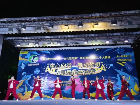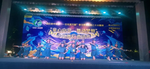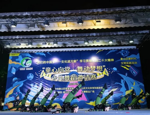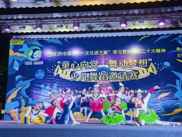 8月4日晚,由中共象山区委宣传部、象山区文化体育和旅游局主办;象山区文化馆、大摩联达广场承办的“我们的中国梦——文化进万家”学习贯彻党的二十大精神“童心向党·舞动梦想”少儿舞蹈邀请赛在大摩联达广场隆重举行。