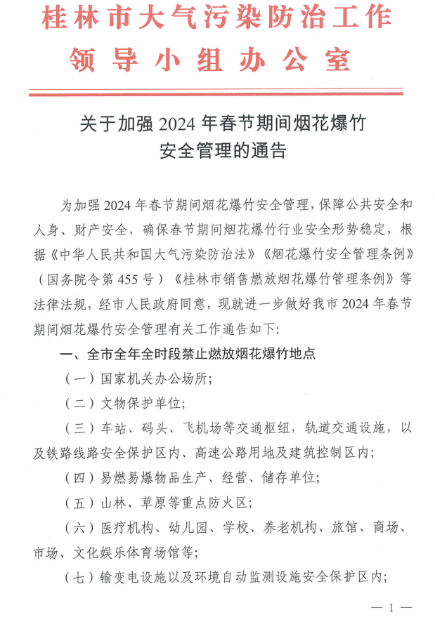 桂林市大气污染防治工作领导小组办公室关于加强2024年春节期间烟花爆竹安全管理的通告.pdf
