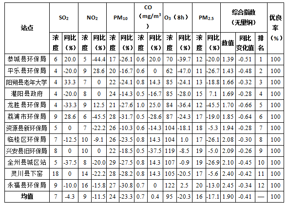 桂林市2022年6月各县区环境空气质量状况