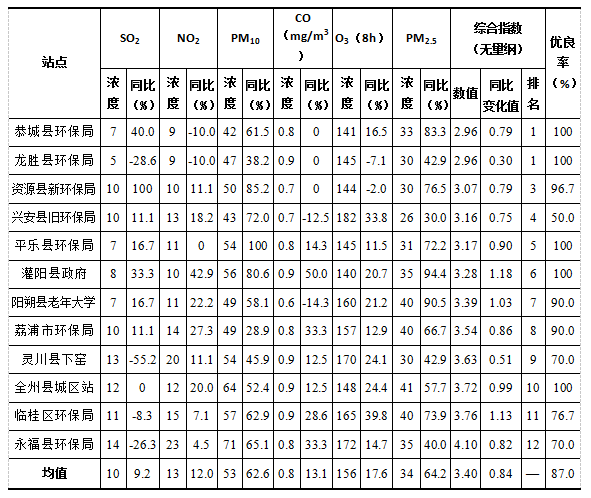 桂林市2022年9月各县区环境空气质量状况