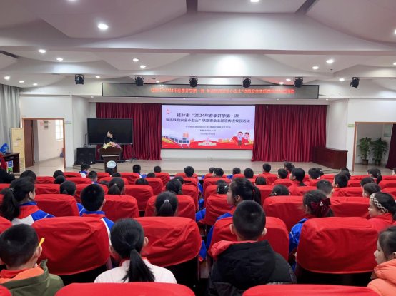 为进一步推进平安铁路建设,构建良好路外环境,强化铁路沿线中小学生的铁路交通安全意识,营造全社会知路、爱路、护路的浓厚氛围,3月13日,桂林市委政法委、平安桂林护路办联合桂林市教育局、高铁桂林工务段、桂林站铁路派出所、象山区委政法委、区护路办、区教育局在桂林市民主小学开展春季学期“开学第一课”铁路护路安全宣传教育进校园活动。