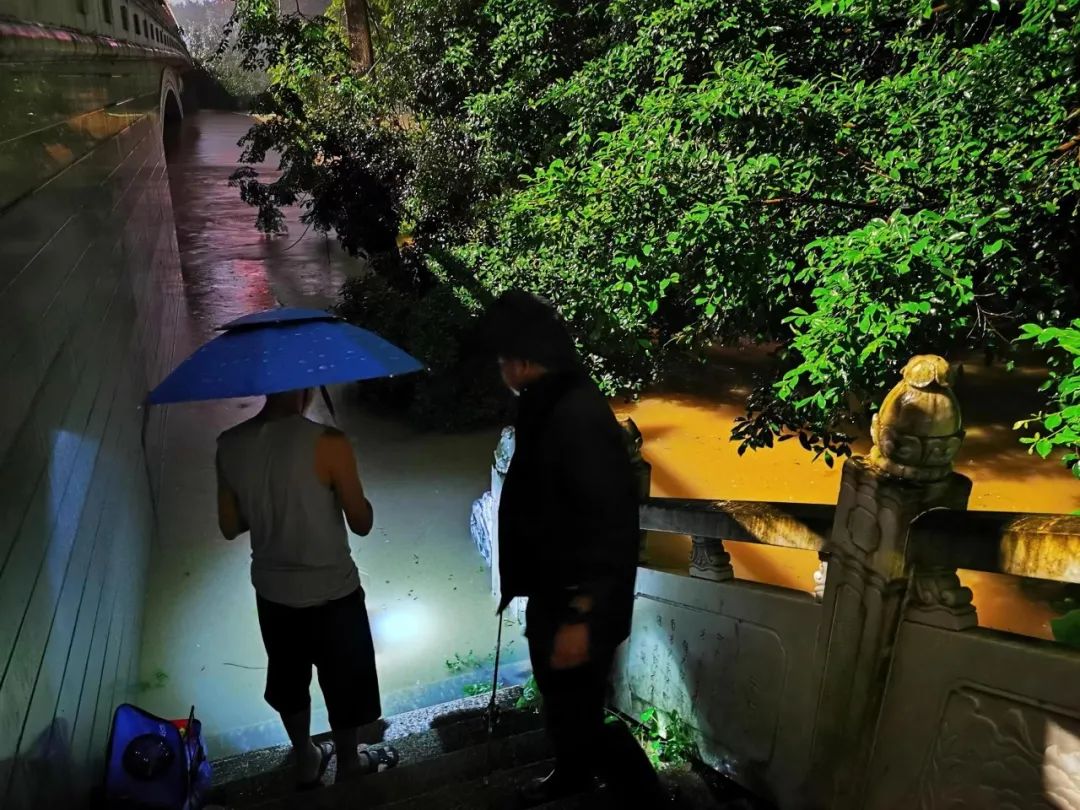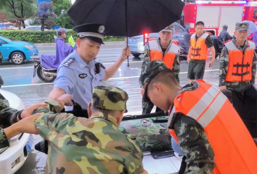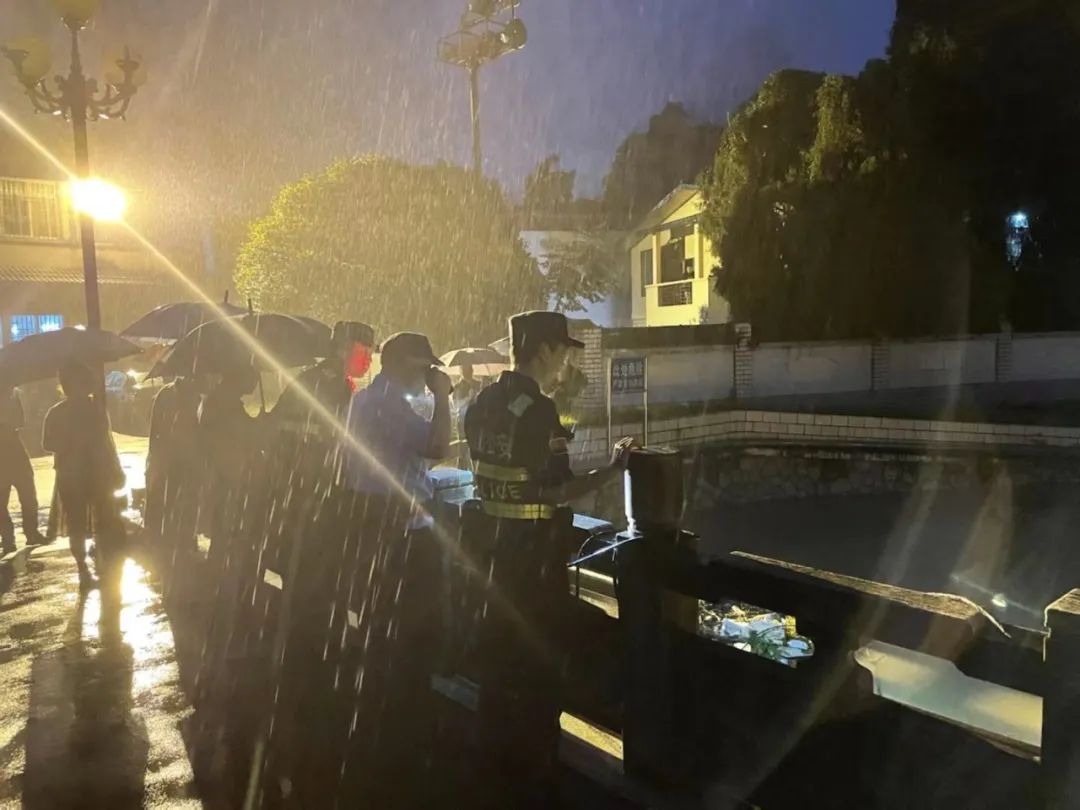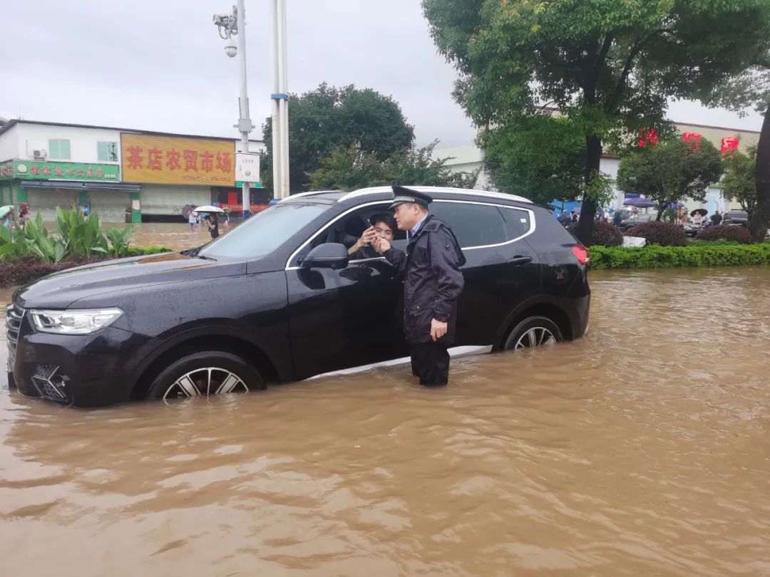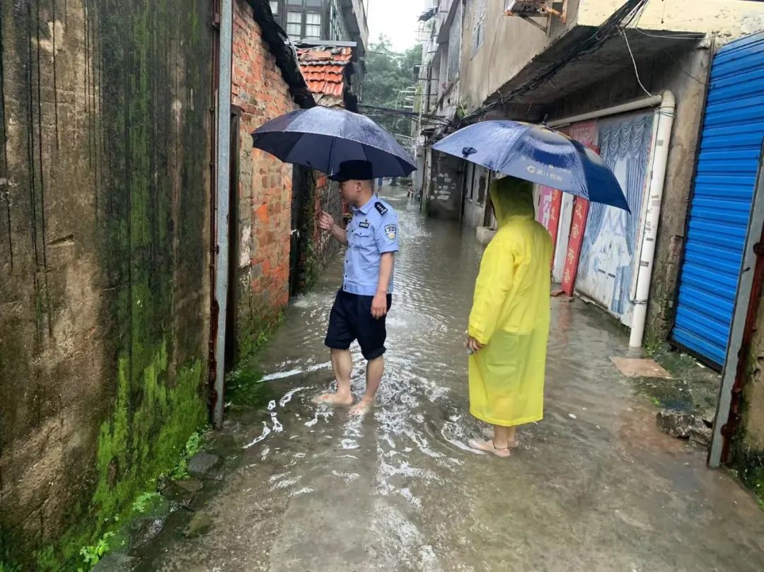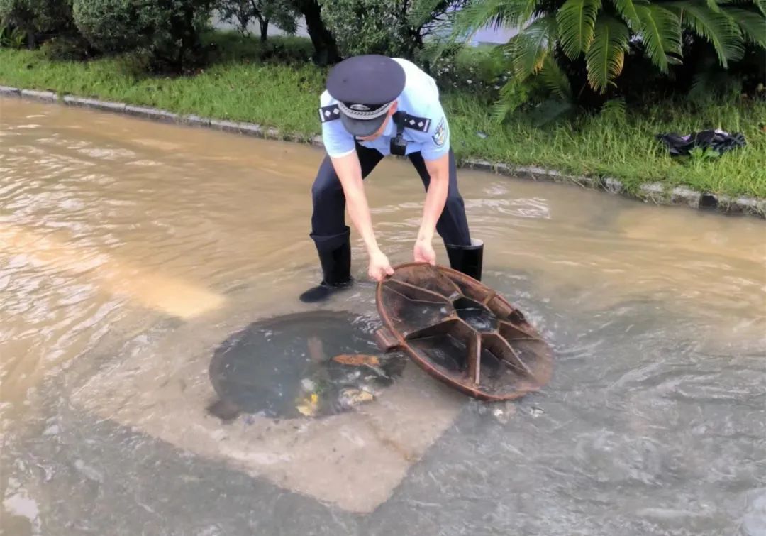 风雨里,分局警力在内涝、积水严重地段开展执勤,对积水较为严重的路段、路口进行安全警示,对过往车辆、行人加强预警提示、疏导分流,劝离围观群众,清理水中障碍、排污口垃圾、搀扶过往行人,确保辖区过往群众、车辆的安全通行。
