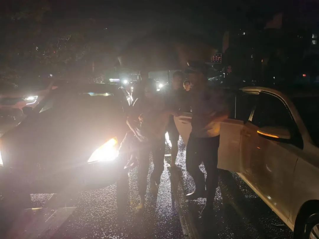 6月21日22时许,二塘派出所民警正在凯风路段开展夜间汛期巡查,一位群众抱着小孩找到民警求助。原来5岁的小孩突发高烧且流鼻血,其父亲驾驶汽车准备将其送往医院治疗,但因道路积水,车辆无法通行。情况紧急,民警立即驾驶警车,避开深度积水路段,仅用时8分钟,将小孩及家人安全送到医院。